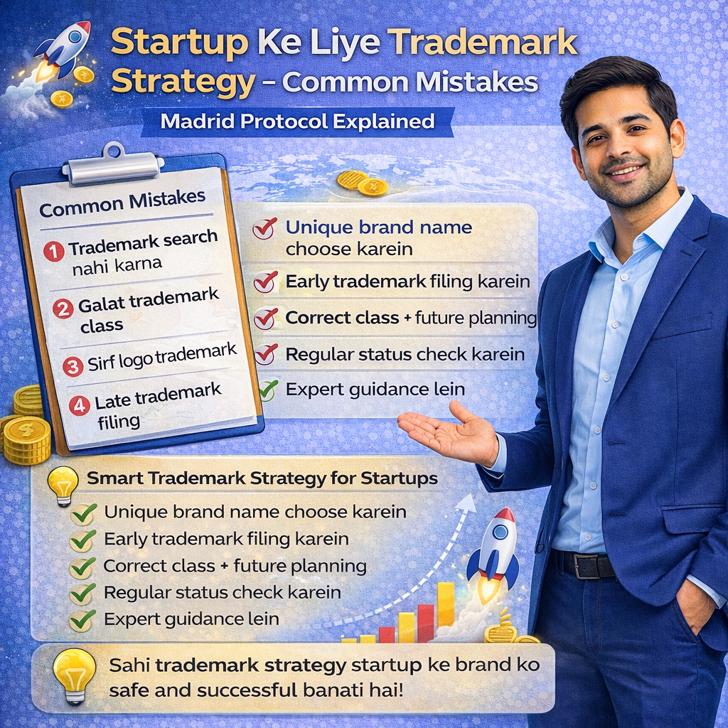 10 Feb Trademark Startup Ke Liye Trademark Strategy β Common Mistakes Posted by Abhishek Gupta February 10, 2026 π Startup Ke Liye Trademark Strategy β Common Mistakes Startup shuru karte waqt founders funding, marketing aur product par focus kart... Continue reading