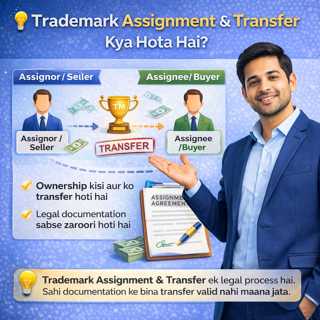10 Feb Trademark Trademark Assignment & Transfer Kya Hota Hai? Posted by Abhishek Gupta February 10, 2026 π Trademark Assignment & Transfer Kya Hota Hai? Trademark sirf ek name ya logo nahi hota, balki ek legal asset hota hai.Jab is ass... Continue reading