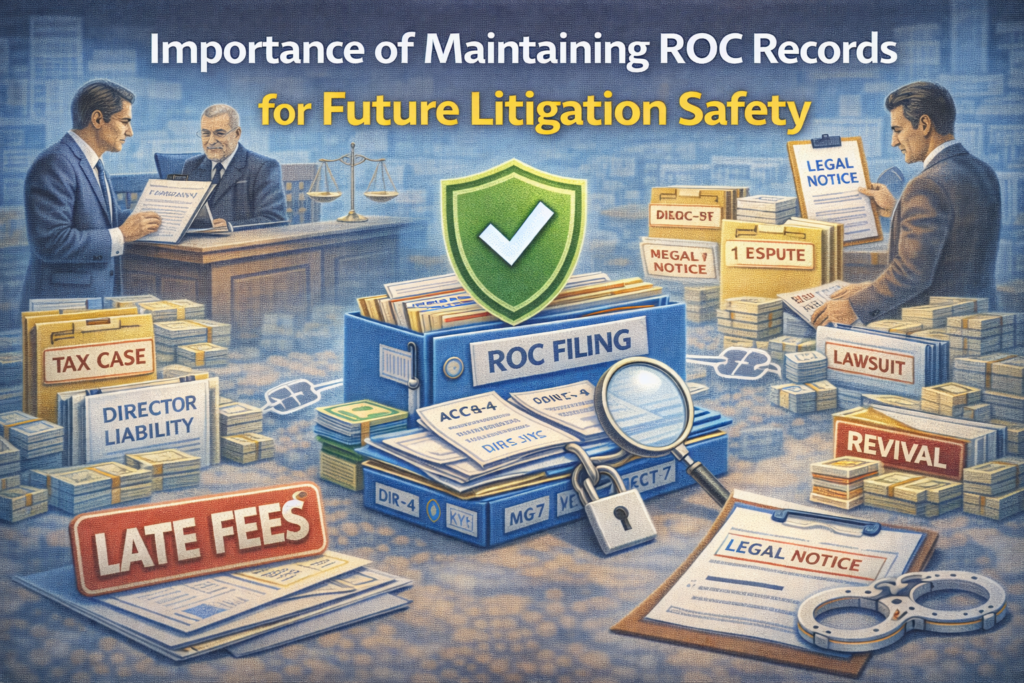 10 Feb Blog Importance of maintaining ROC records for future litigation safety Posted by Abhishek Gupta February 10, 2026 Introduction Most companies look at ROC filings as routine compliance. Very few realise that ROC records act as legal evidence in f... Continue reading