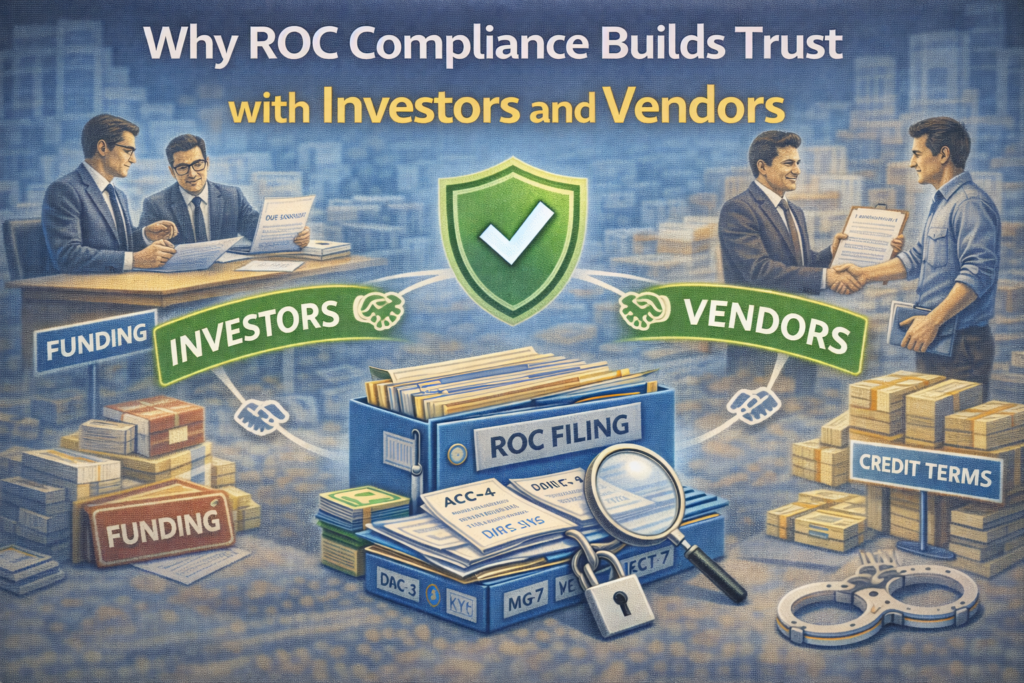 10 Feb Blog Why ROC compliance builds trust with investors and vendors Posted by Abhishek Gupta February 10, 2026 Introduction Investors and vendors donβt trust promises. They trust records. Before investing money or giving long credit, the f... Continue reading