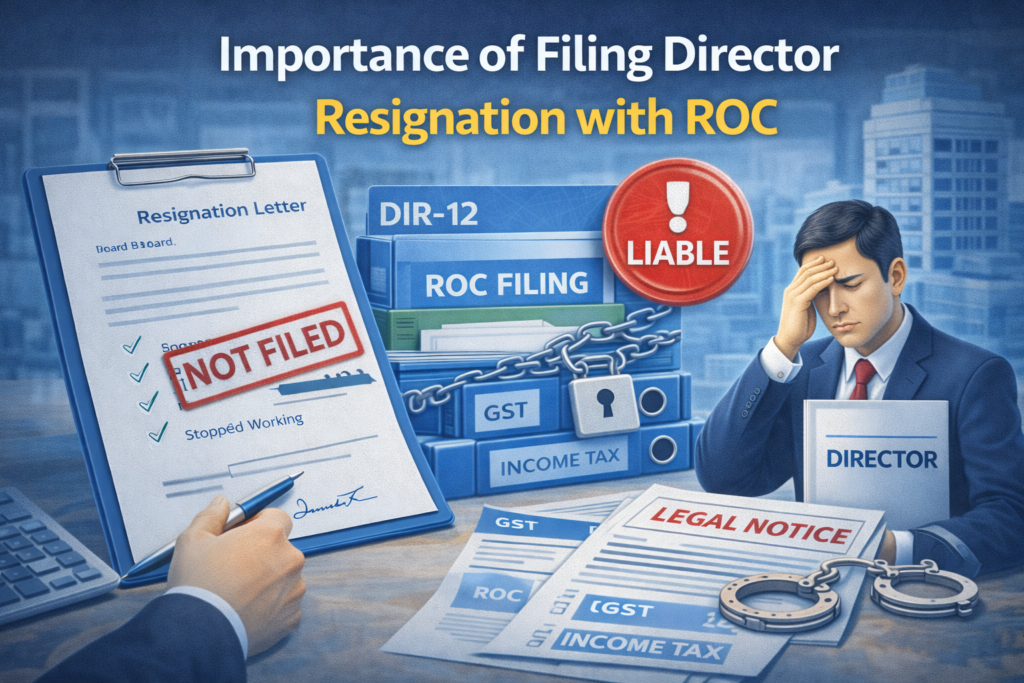 10 Feb Blog Importance of filing director resignation with ROC Posted by Abhishek Gupta February 10, 2026 Introduction Many directors resign from a company assuming that submitting a resignation letter is enough. That assumption is risky... Continue reading