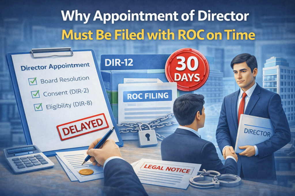 10 Feb Blog Why appointment of director must be filed with ROC on time Posted by Abhishek Gupta February 10, 2026 Introduction Many companies appoint a director through a board resolution but delay or ignore filing it with ROC. This is a serious... Continue reading
