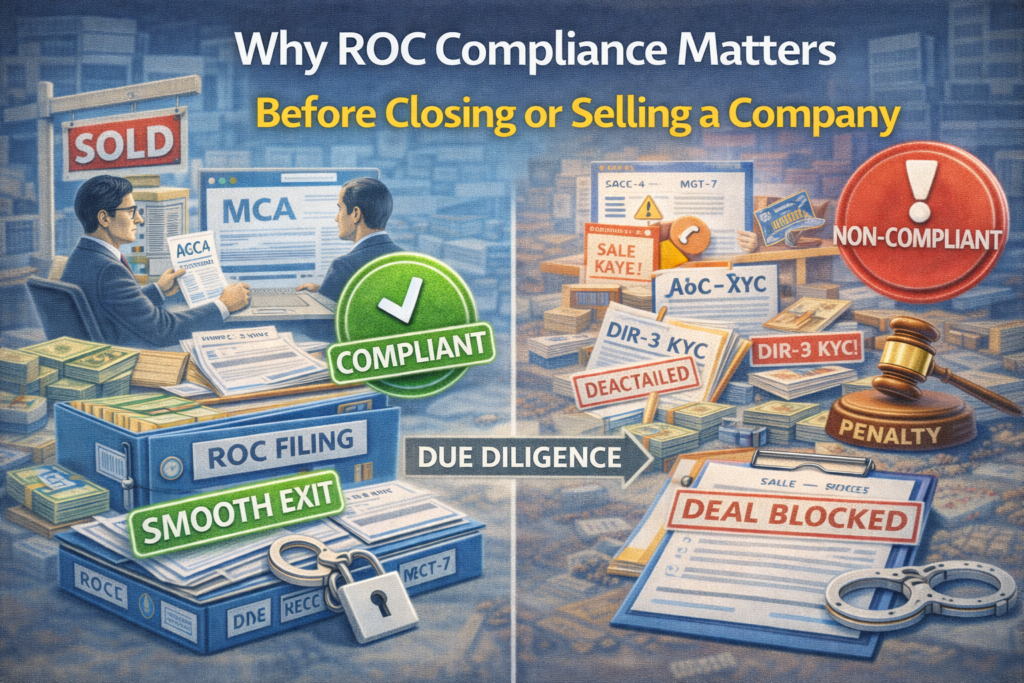 10 Feb Blog Why ROC compliance matters before closing or selling a company Posted by Abhishek Gupta February 10, 2026 Many business owners decide to close or sell a company assuming it will be quick and simple. That assumption breaks the moment due dil... Continue reading