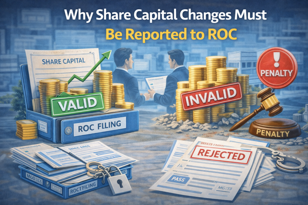 10 Feb Blog Why share capital changes must be reported to ROC Posted by Abhishek Gupta February 10, 2026 Many companies increase, reduce, or restructure their share capital but forget to report these changes to the ROC. This mistake can in... Continue reading