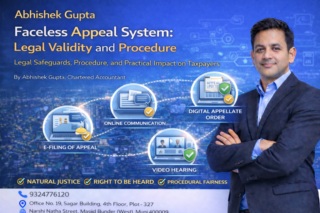 10 Feb Blog Faceless Appeal System: Legal Validity and Procedure Posted by Abhishek Gupta February 10, 2026 The Faceless Appeal System marks a major transformation in Indiaβs tax dispute resolution framework. Introduced to enhance transparency... Continue reading