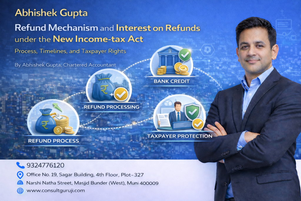 10 Feb Blog Refund Mechanism and Interest on Refunds under New Act Posted by Abhishek Gupta February 10, 2026 Refund of excess tax paid is not a concession by the tax department. It is a statutory right of the taxpayer. Under the New Income-tax ... Continue reading