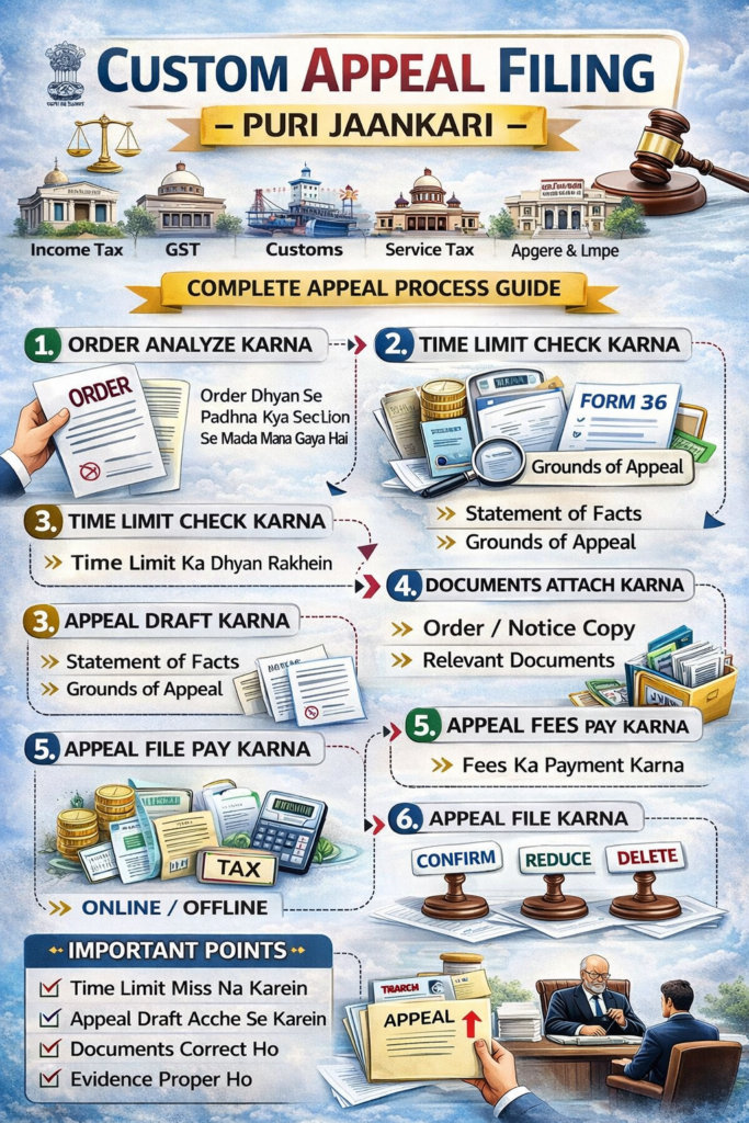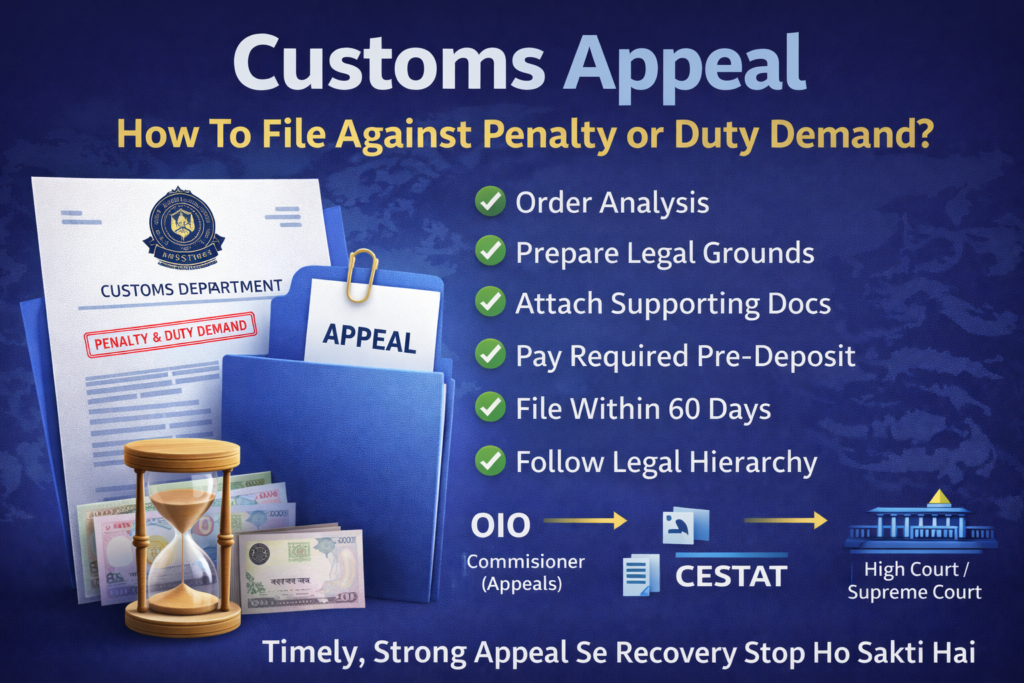 19 Feb Blog Custom Appeal Filing Posted by Abhishek Gupta February 20, 2026 Custom Appeal Filing Kya Hota Hai? “Custom” ka matlab yahan tailor-made / specially drafted appeal se hai. Yeh normal form fill karn... Continue reading