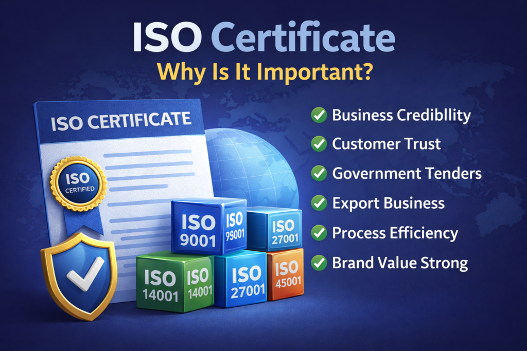 19 Feb Blog ISO Certificate Posted by Abhishek Gupta February 20, 2026 ISO Certificate Kya Hota Hai? Kyu Zaroori Hai? Bahut log sirf naam ke liye ISO Certificate banwa lete hain. Lekin asal me ISO certif... Continue reading