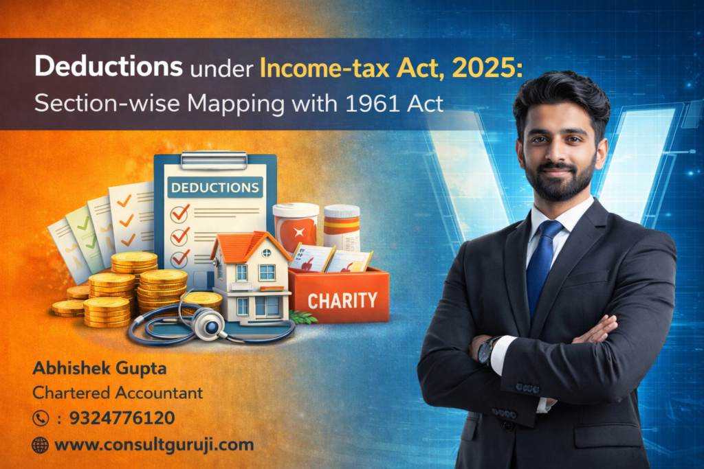 09 Feb Blog, Income Tax Deductions under Income-tax Act, 2025: Section-wise Mapping with 1961 Act Posted by Abhishek Gupta February 9, 2026 Introduction Deductions play a crucial role in reducing taxable income and encouraging savings, investments, and social welfare spen... Continue reading