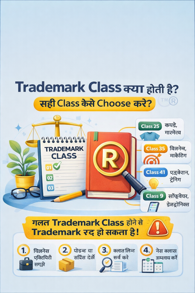 10 Feb Trademark Trademark Class Kya Hoti Hai? Sahi Class Kaise Choose Kare? Posted by Abhishek Gupta February 10, 2026 πΉ Trademark Class Kya Hoti Hai? Trademark Class ek category system hota hai jisme goods aur services ko alag-alag classes me divide ki... Continue reading